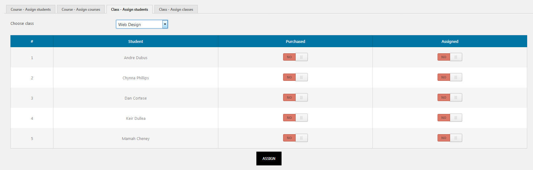 Toggle the “Assigned” switch to “Yes” for the students you want to assign.