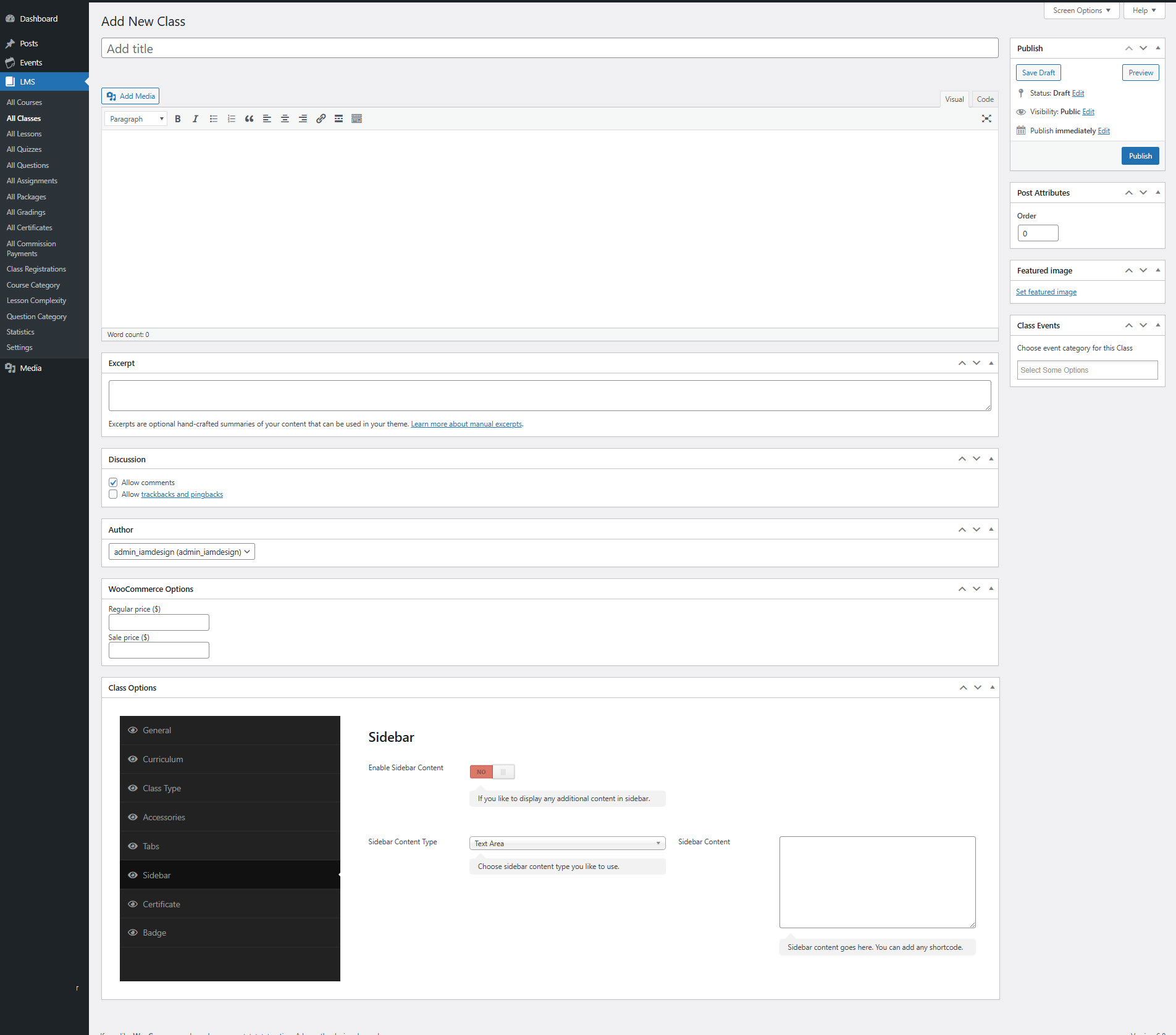 Class Description (Editor Area): Use the WordPress editor to write a detailed introduction of the class, its objectives, and expected outcomes.