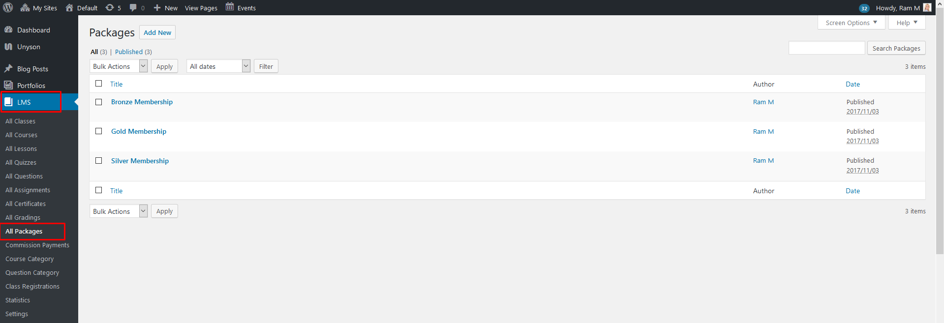 You can manage packages from: Dashboard > LMS > All Packages > Add New