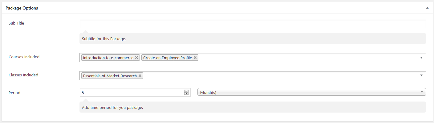 This metabox allows you to configure the package’s pricing directly:
